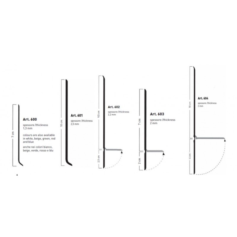 Battiscopa in pvc in 6 formati diversi che coprono sia parete che pavimento.